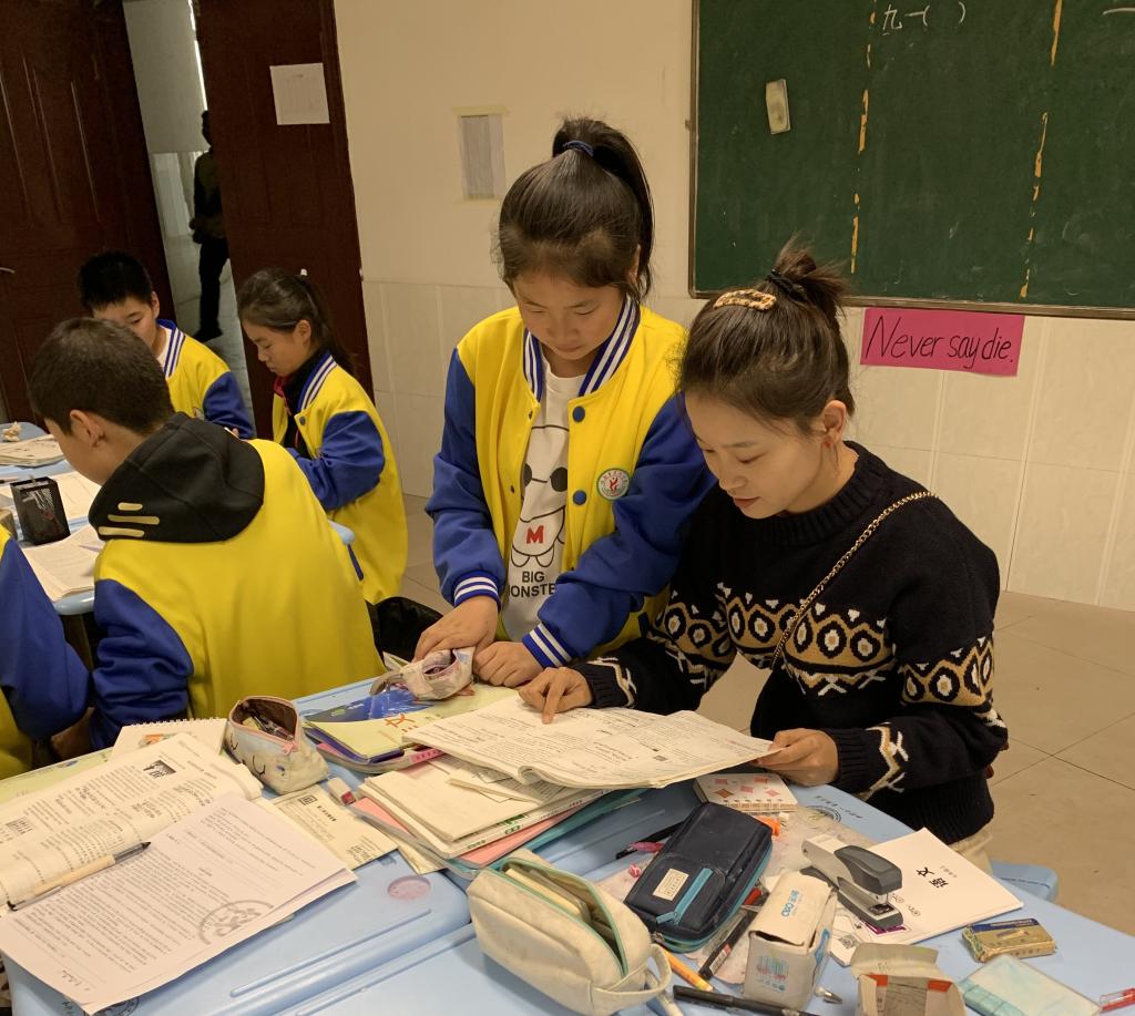 在校外实践导师赵树勇的带领下,同学们通过理论学习和跟班实践,初步了解初中生生活常规,基本熟悉初中教学工作流程。对每一个实践活动,赵老师带领实习生一起分析教材,参考初中生年龄特点,精心设计教学环节,不厌其烦地为实习生们“磨课”,力求让其更全面地理解教材、应用教材,提高驾驭教材能力。赵老师悉心指导,以身示范羊山中学特有的“3+3+3”教学模式,通过教学实践告诉同学们,上课不再只是老师教、员工学的枯燥过程,而是员工在老师引导下主动探究、师生合作交流的愉快活动。