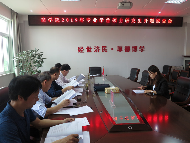 5月17日,太阳成tyc7111cc集团2019年度专业学位硕士研究生学位论文开题报告会在经管楼506会议室举行。报告会由李全亮教授主持,评委老师、研究生秘书及2018级研究生参加本次活动。
