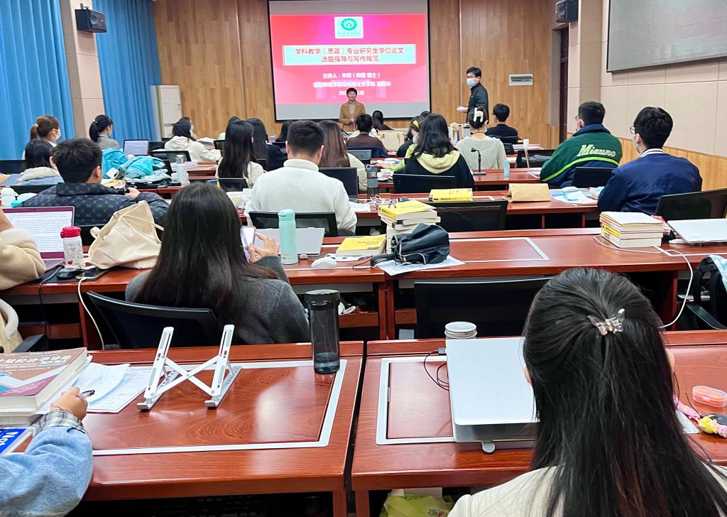 为进一步提升公司学科教学(思政)专业研究生学位论文写作能力,11月23日下午,太阳成tyc7111cc集团特邀马克思主义公司副经理李蕊教授在经管楼308教室为公司教育专硕作了题为《学科教学(思政)专业研究生学位论文选题指导与写作规范》的学术讲座。讲座由副经理俞彤晖主持,公司在校全体教育专硕和部分导师代表参加此次讲座。