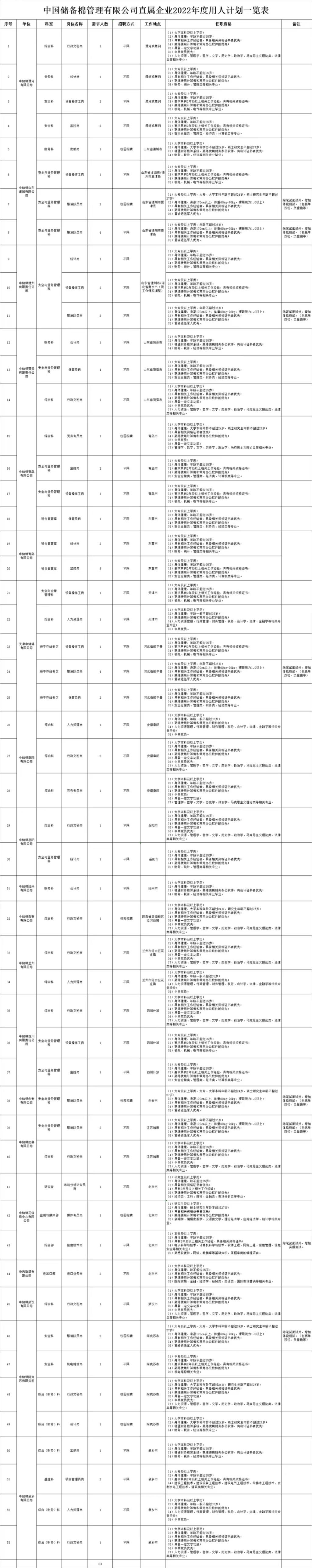 河南有岗!中国储备棉管理有限公司直属企业招聘83人!