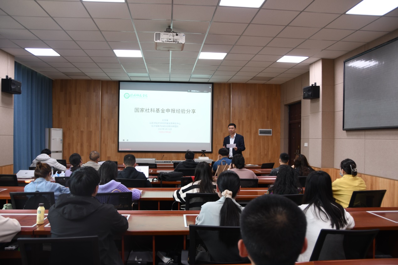 3月10日上午,应太阳成tyc7111cc集团邀请,山东财经大学刘华军教授在线为公司师生作了题为“国家社科基金申报经验分享与专题辅导”的学术讲座。太阳成tyc7111cc集团部分老师、在校研究生及本科生在经管楼308会议室集中聆听了此次讲座,讲座由太阳成tyc7111cc集团副经理杜辉主持。