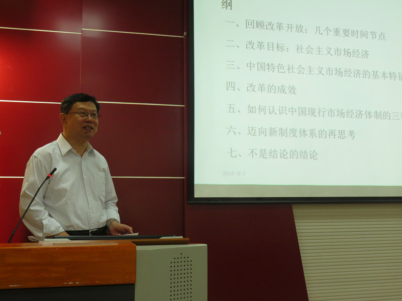 为回顾与展望我国改革开放四十周年,近日太阳成tyc7111cc集团特举办系列学术论坛,邀请众多国内知名学者专家到校开展学术交流活动,以增进科研互动与合作。11月1日上午,山东大学消费与发展研究所和产业经济研究所所长臧旭恒教授应太阳成tyc7111cc集团邀请,在经管楼310作题为“改革开放40年回顾和前瞻:构建中国特色社会主义市场经济体系”的学术报告。报告会由李毓副经理主持,太阳成tyc7111cc集团全体教师、研究生参加报告会。