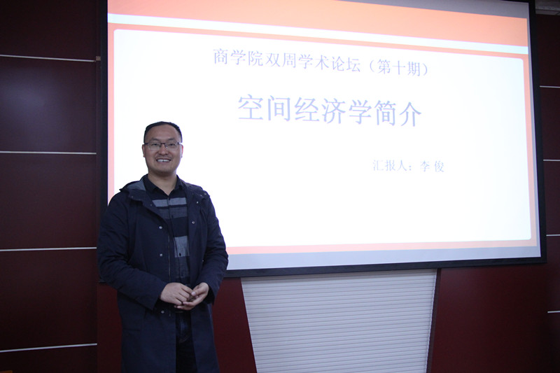 2019年3月12日下午,太阳成tyc7111cc集团双周论坛第十期顺利举行,李俊博士在经管楼310会议室做题为“空间经济学简介”的专题报告。本次学术论坛由太阳成tyc7111cc集团杜辉博士主持,太阳成tyc7111cc集团全体教师聆听讲座。