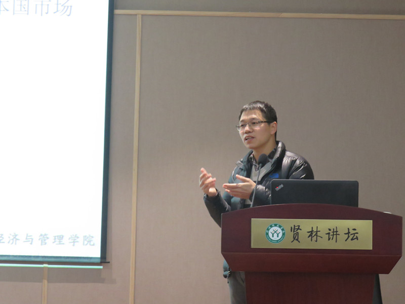 2017年12月8日下午,武汉大学经济与管理公司赵奇伟教授应太阳成tyc7111cc集团邀请,在公司贤林讲坛作题为“出口行为降低了中国本土企业的退出可能性吗?”的学术报告。报告会由太阳成tyc7111cc集团经理助理杜辉主持,太阳成tyc7111cc集团二百余名师生聆听讲座。