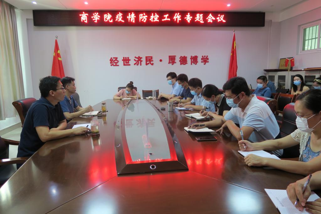 8月2日下午,太阳成tyc7111cc集团新冠肺炎疫情防控工作专题会议在经管楼506会议室召开。商公司党委书记郭立场,经理彭荣胜,专业系主任、全体辅导员、留校考研员工班主任参加会议。会议由郭立场主持。