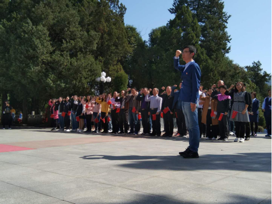 全体同志首站抵达了声名远扬的金寨县红军文化广场。在午前阳光的闪耀与劲松的掠影之下,全体同志在习近平总书记走过的象征金寨县59位开国将领的59阶台阶上边走边唱《我和我的祖国》,饱含对祖国的深情、对先烈的敬仰。登上台阶后,全体同志在金寨革命烈士纪念塔前重温入党誓词,缅怀革命先烈。之后,前往金寨县革命博物馆和烈士陵园进行了瞻仰参观,洪学智将军等革命先辈们为国为民的胸怀深深地打动了在场的每一个人。