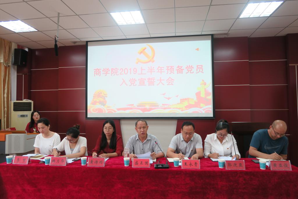 6月24日,我院在经管楼310举办2019上半年预备党员宣誓大会,公司43名预备党员在党旗的见证下光荣的完成了自己的人生的转折点,开启了人生新篇章。商公司党委书记盛正国,副书记王永贵、团委书记黄诗雨、团委老师韩月华、黄亚俊、李梦出席会议,会议由团委老师郭迎亚主持。