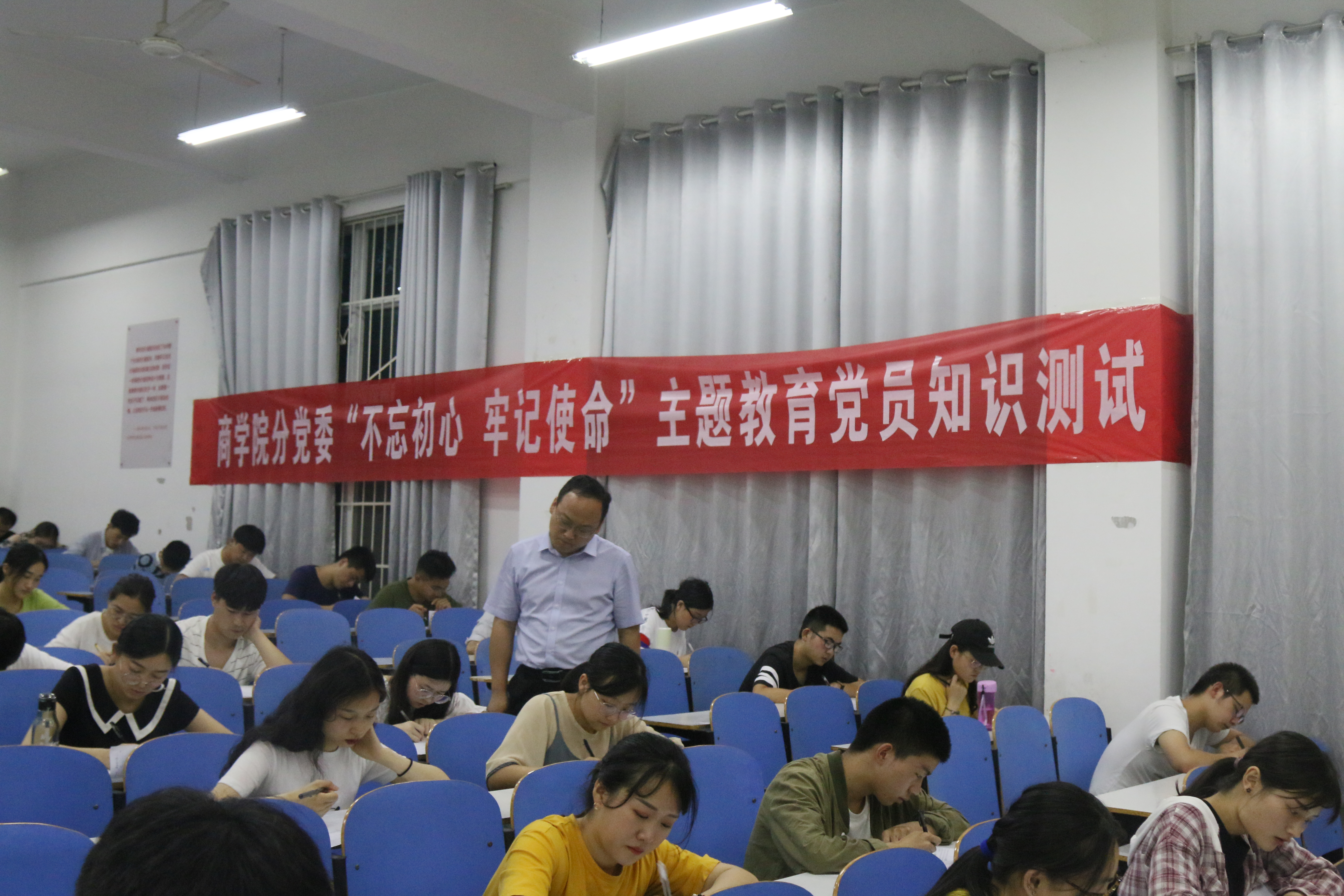 为深入学习贯彻党的十九大会议精神,强化政治理论学习,提高理论学习实效,太阳成tyc7111cc集团分党委于6月21日晚进行了“不忘初心,牢记使命”主题教育党员知识测试,商公司党委副书记王永贵带领公司辅导员进行巡考。