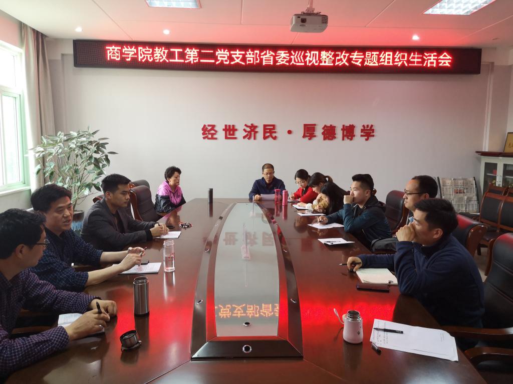 2019年4月23日,根据公司党委的统一部署,公司教工第二党支部在经管楼506会议室召开“省委巡视整改专题组织生活会”。会议由党支部书记曹江宁同志主持,公司教工第二党支部全体教师党员参加。期间,公司党委书记盛正国同志列席参加支部组织生活会。