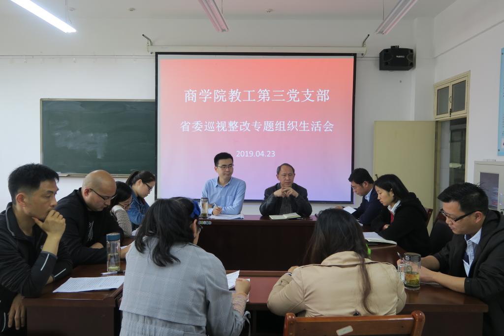 423日,根据公司党委的统一部署,公司教工第三党支部在经管楼502教室召开省委巡视整改专题组织生活会。这次组织生活会的主题是:聚焦省委巡视反馈问题和要求,以自我革命的勇气和担当对照检查、剖析根源、强化整改。会议由支部书记俞彤晖同志主持,支部全体教工党员出席,期间,商公司党委书记盛正国同志列席参加教工第三党支部组织生活会。