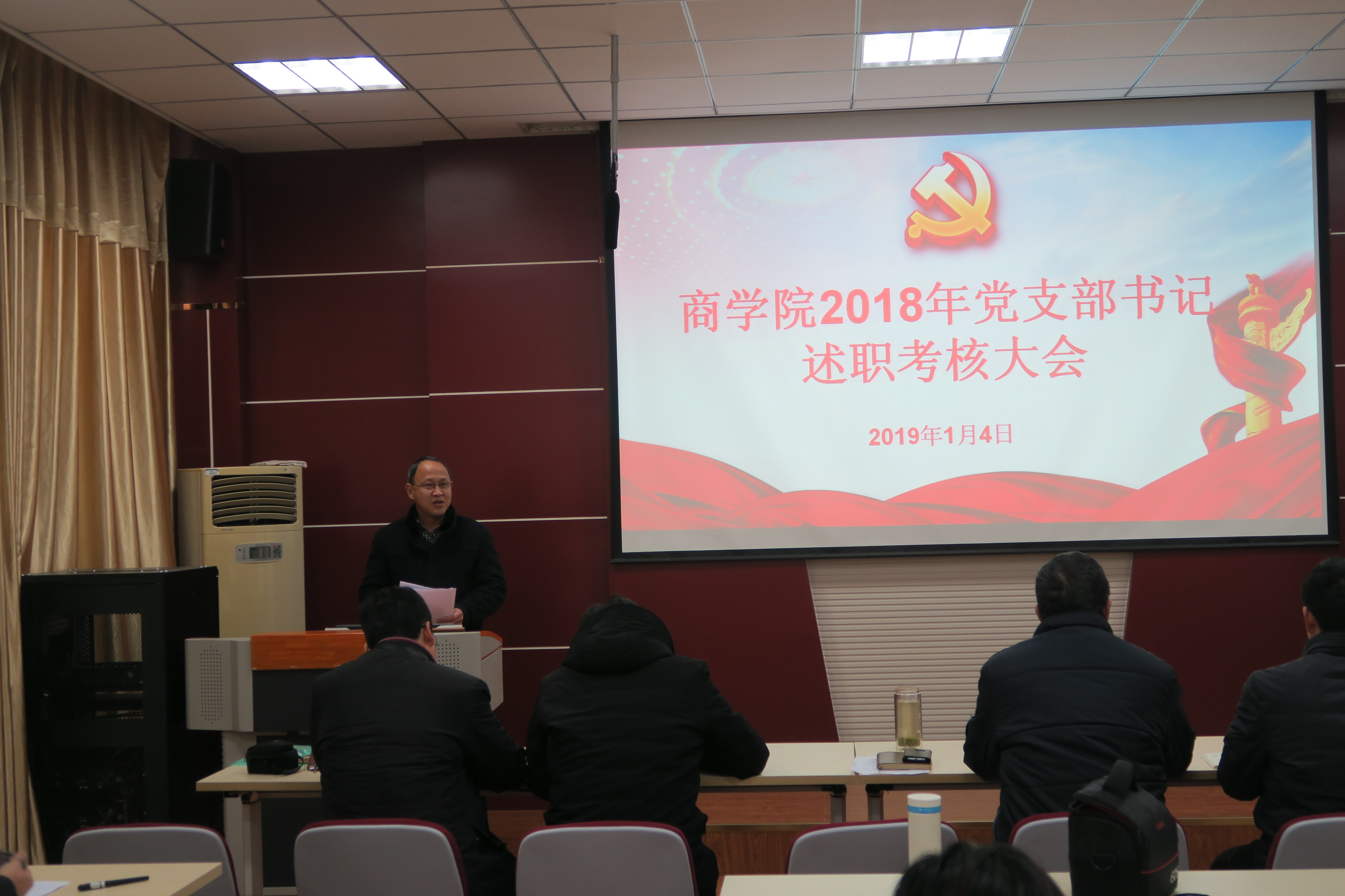 为深入学习贯彻习近平新时代中国特色社会主义思想,切实推进全面从严治党向纵深发展,推动基层党组织建设全面进步,1月4日下午,信阳师范公司太阳成tyc7111cc集团于经管楼310会议室召开了2018年党支部书记述职考核大会,全体党员参与了本次会议。会议由商公司党委书记盛正国主持。