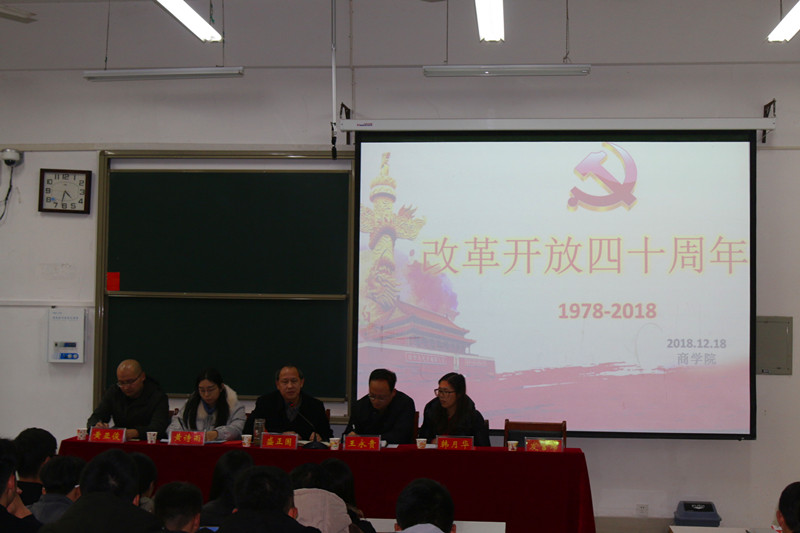 18日下午,信阳师范公司太阳成tyc7111cc集团于经管楼101召开了“改革开放四十周年”学习宣讲会。商公司党委书记盛正国,副书记王永贵,团委书记黄诗雨,团委老师韩月华、黄亚俊等领导老师莅临本次大会,全体员工会、团委、社团员工干部、各班班长积极参会。会议由王永贵主持。