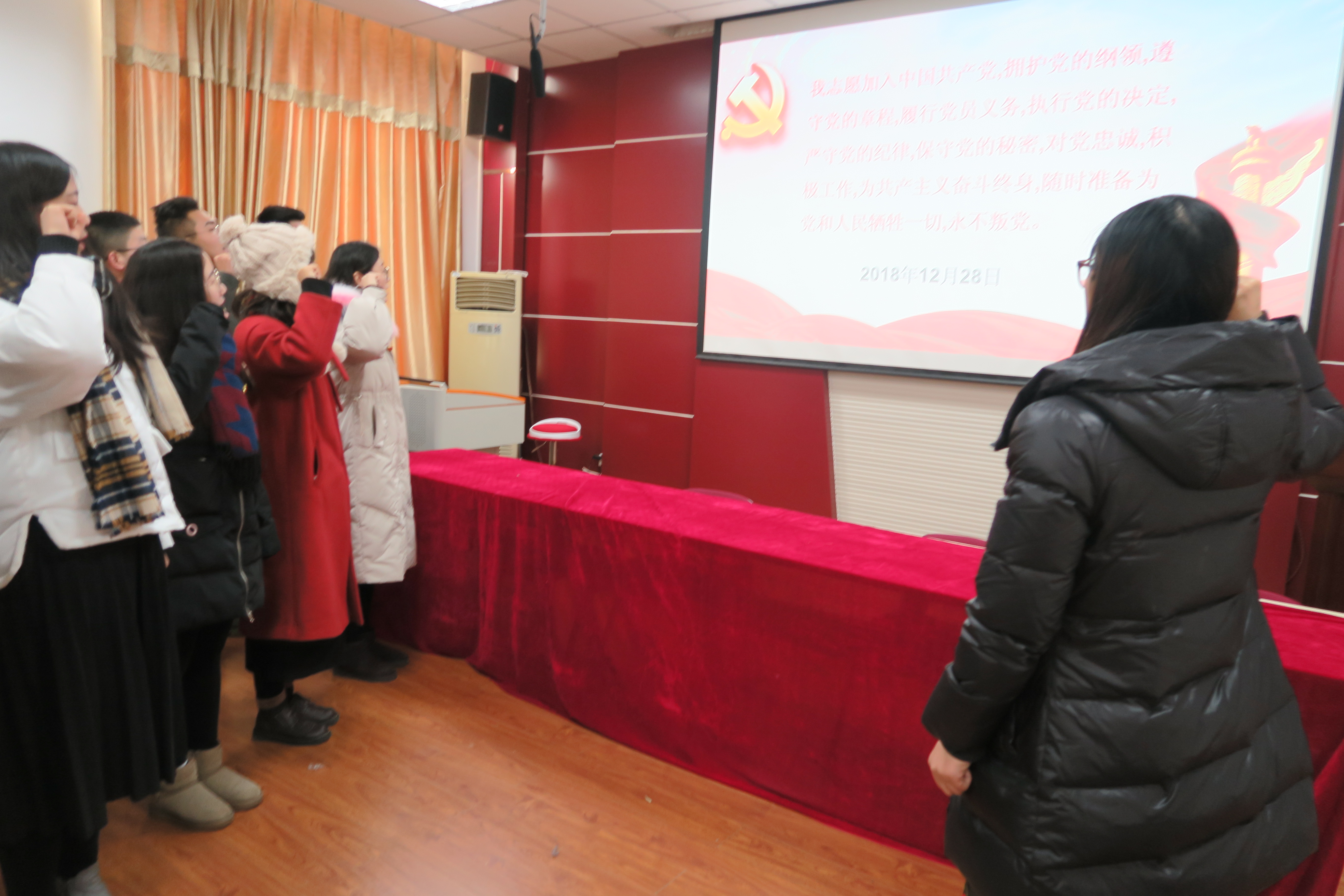 首先,韩月华老师带领全体预备党员学习了党的相关知识并对预备党员提出了有关要求,要求大家积极发挥先锋模范带头作用,牢记自己的第一身份是共产党员,第一职责是为党工作,为人民服务,做到忠诚于党组织,忠诚于党和人民。接着,她强调,作为预备党员,要认真学习党章,自觉践行党章,提高党性修养,认真学习党的十九大精神,认真学习贯彻习近平新时代中国特色社会主义思想,不忘初心,牢记使命,砥砺前行。最后,韩月华老师带领全体预备党员进行宣誓。