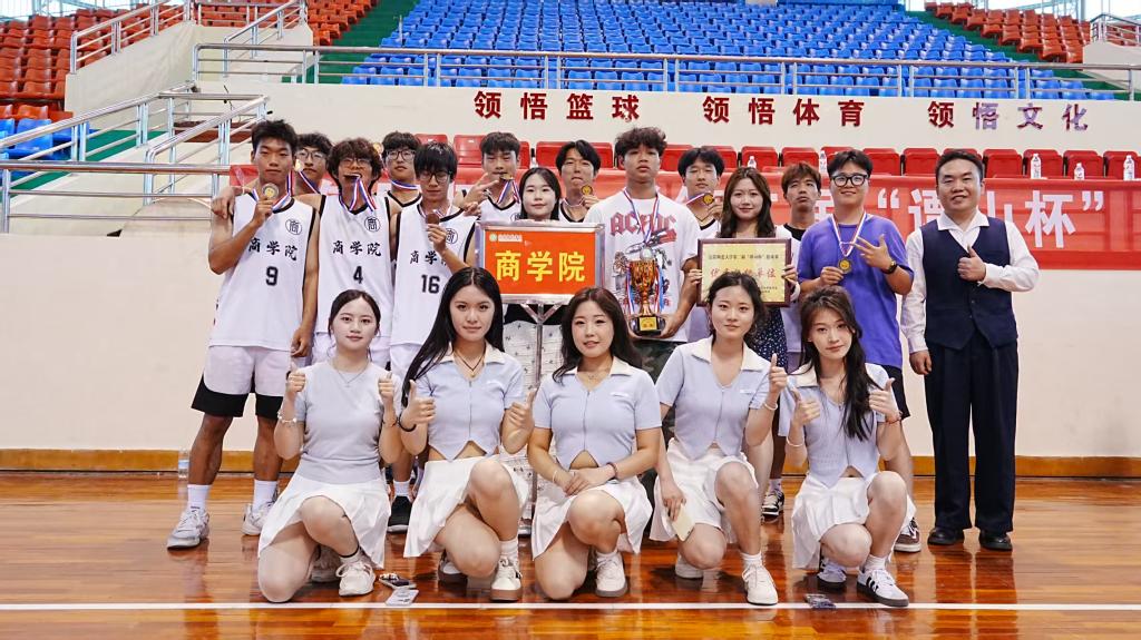 4月8日,太阳成tyc7111cc集团第二届"谭山杯"篮球赛颁奖典礼在体育馆隆重举行。在此前比赛中,太阳成tyc7111cc集团代表队表现优异,女子篮球队成功晋级八强,男子篮球队斩获季军,展现了商院学子顽强拼搏的体育精神。