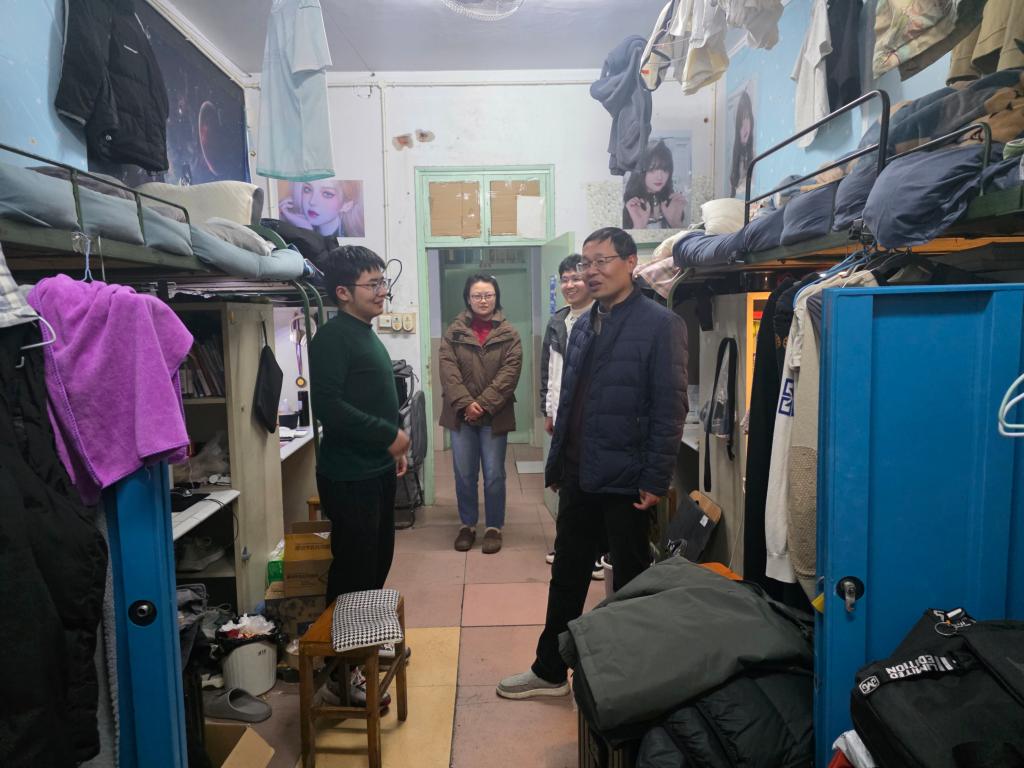 12月9日晚,商公司党委书记李辉、党委副书记黄钰莹深入大四员工宿舍,开展走访慰问与安全检查工作,以实际行动关心学子成长、守护校园安全。