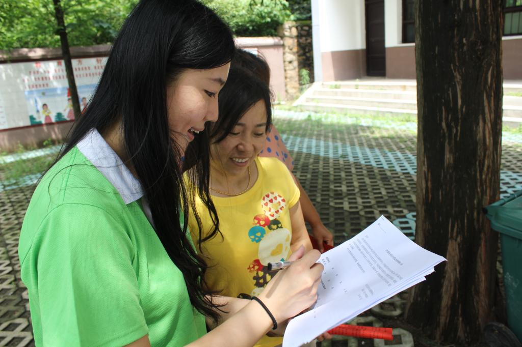 在孩子们的热烈欢迎下老员工们充当了他们老师,老员工针对孩子们所学课程进度进行了有针对性的授课。老员工们讲课热情高涨,方法有趣:史丹丹同学以《送元二使安西》为切入点,详细地向员工们介绍了诗词分析技巧、并与大家富有感情地朗诵诗词,姚佳琪同学就单位换算与大家分享了数学学习方法,并交流了自己多年数学学习的感悟、郝悦同学通过现场英语写作来与大家共同探讨语法知识,在孩子的配合下,一篇作文终于完整写出。授课期间孩子们边听边记,积极发言,气氛活泼热烈。老员工们勉励孩子们刻苦学习,不忘理想,以优异成绩回报关心自己的人。最后教学活动在《同一首歌》、《小星星》的歌声中结束,课后孩子们纷纷表示哥哥姐姐的讲课幽默风趣,易于接受,让自己发现了学习的乐趣。