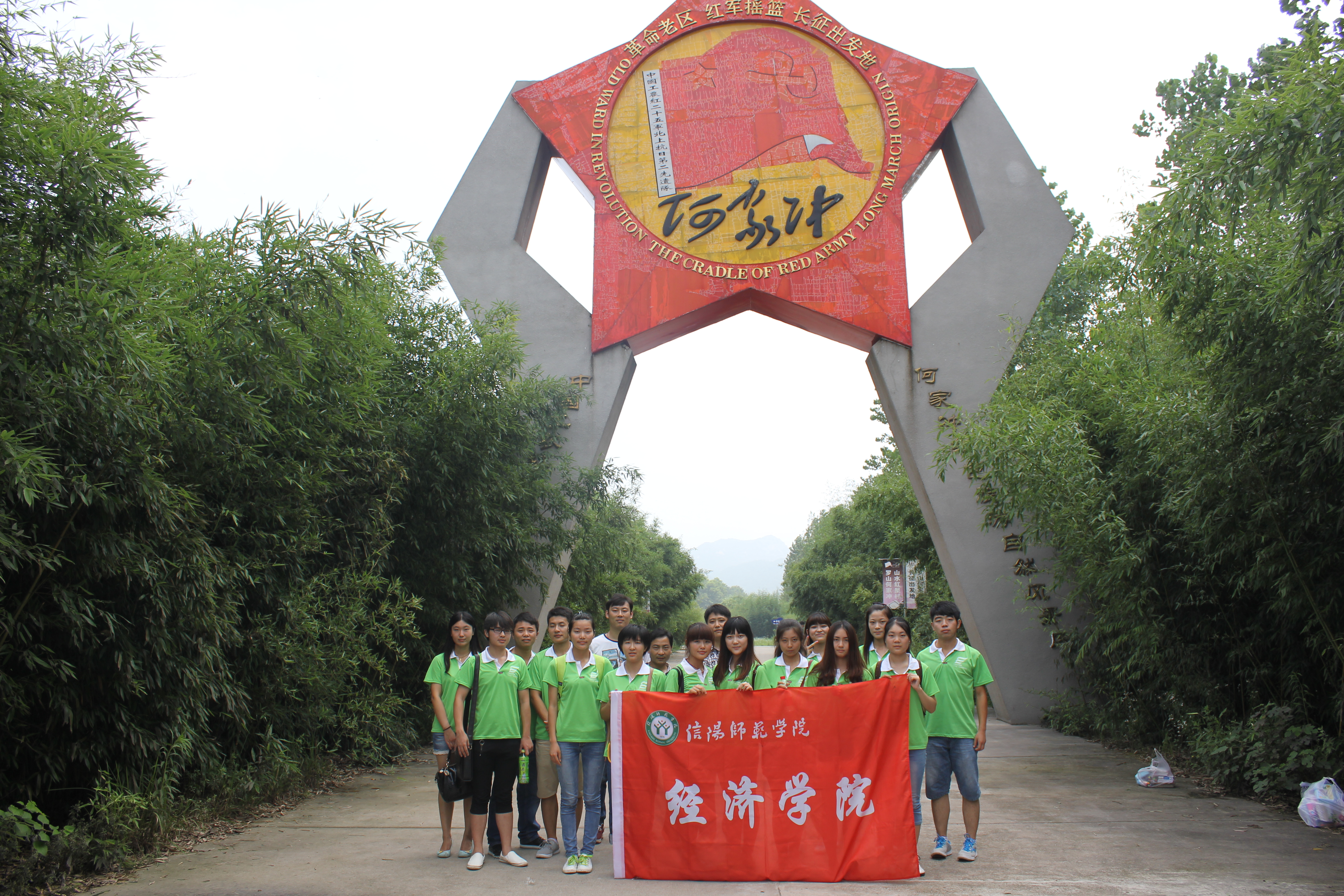 4号上午,经济公司社会实践小分队在当地干部的带领下来到了何家冲,开始了重走长征路。同学们一边前进,一边倾听干部讲解长征的历史知识。经过了近一个小时的路程,大家来到了何氏祠——中国工农红军第二十五军长征纪念馆。在讲解员的细心讲解下,同学们了解到第二十五军长征的历史背景、相关历史名人、传奇事迹和所做出的巨大贡献。参观完之后,同学们来到了第二十五军长征出发点,并在陈老师的带领下对着党旗重温入党誓言,洪亮的声音响彻云霄,再显当代老员工党员的精神面貌。