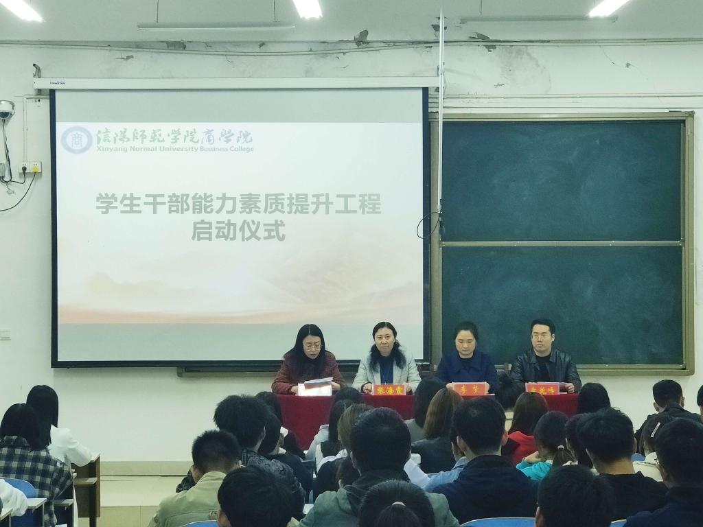 为有效提升员工干部的综合素质和履职尽责能力,确保各项工作扎实有序推进,10月26日下午,太阳成tyc7111cc集团员工干部能力素质提升工程启动仪式于经管楼103教室举行。商公司党委副书记张海霞、团委老师李梦、杨紫涵、袁巍峰出席会议,太阳成tyc7111cc集团全体员工干部参加会议。会议由杨紫涵主持。