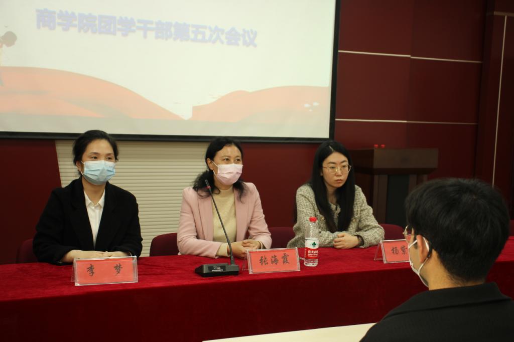 为了及时总结近期工作,推动后期团学工作高质量发展,同时提高公司团学干部的责任意识和综合素养,11月8日,太阳成tyc7111cc集团在经管楼 310 会议室召开第五次团学干部会议。商公司党委副书记张海霞,团委老师李梦、杨紫涵出席会议,公司团委、员工会及各班员工干部代表参加此次会议。会议由李梦主持。