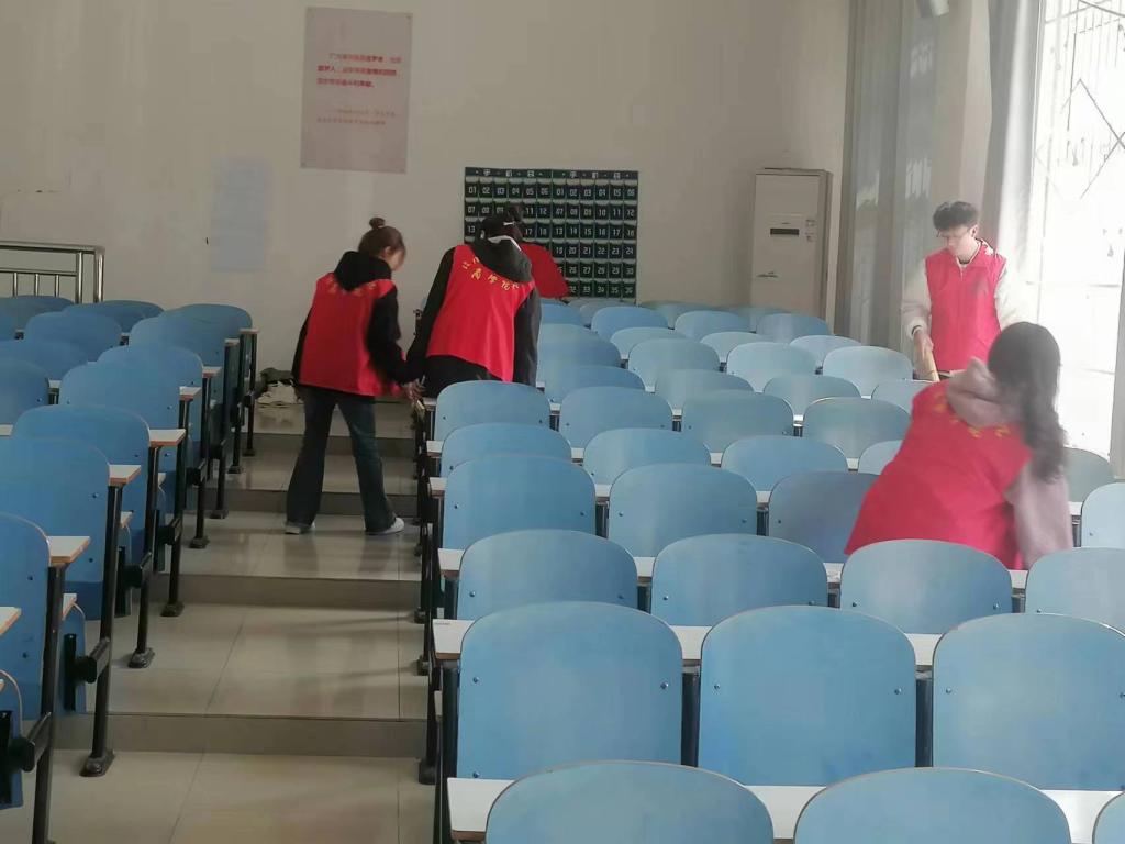 3月5日上午,公司青年志愿者对经管楼固定教室进行了卫生死角清理。志愿者们充分发扬不怕苦、不怕累的奉献精神,对教室地面、讲台、多媒体设备、窗台等进行了彻底清理和打扫,将楼道内放置的展板架等物品进行了规整,使经管楼教室整洁明亮,为同学们创造良好的学习环境。
