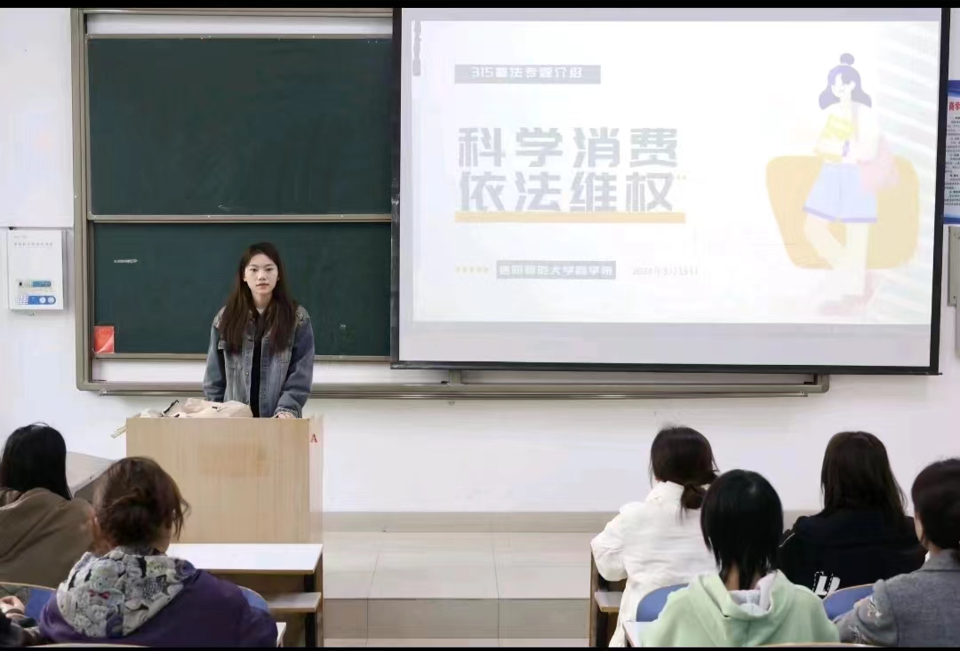活动伊始,赵烜艺向同学们介绍了消费者权益保护日的来源、意义以及相关内容,这使同学们对消费者权益保护日有了更加全面、清晰的认知。随后,她展示了一些消费者维权案例以及与案例相关的分析,并和同学进行深入互动,加深了同学们对于案例的印象,调动了同学们的情绪。通过对相关案例的分析,同学们了解了日常生活中常见的消费者侵权问题并且掌握了面对这些问题时有效的处理方法。最后,赵烜艺详细向同学们介绍了维护消费者权益的三个合法途径:与商家沟通、向相关部门投诉、拨打投诉电话。