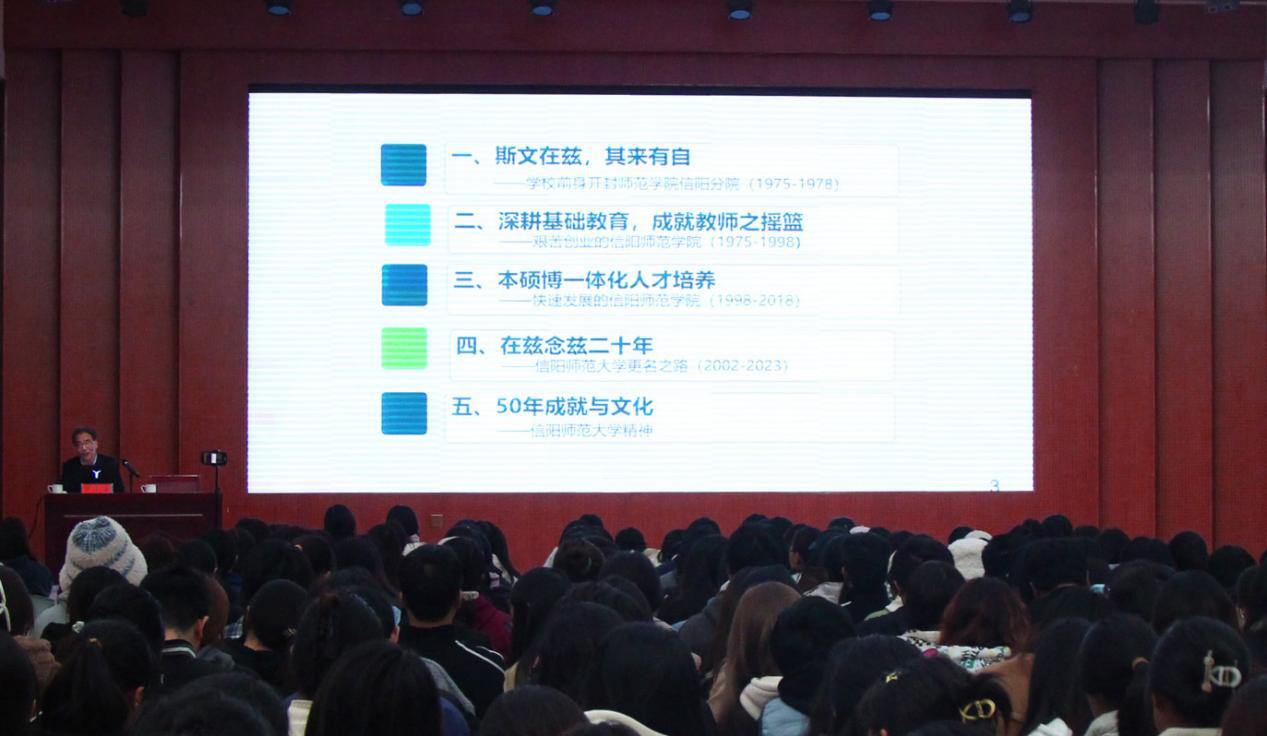 尹全海教授以“清华四导师”之一王国维的故事为切入点,点明作为员工了解公司历史的必要性,紧接着从发展史、基础教育、团队建设、更名过程和师大精神等五个方面进行校情讲解,帮助同学们了解公司的奋斗历史,体会到更名的艰难与不易。最后,尹全海表达了对公司发展的殷切期望和美好憧憬,他希望全体同学能够秉承“厚德崇实 善学敏行”的校训,砥砺奋斗、不负韶华。