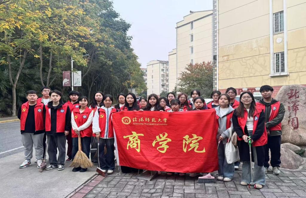 各个小组领队带领同学们有序开展垃圾清洁活动。同学们统一着装,分工明确,对周边环境进行垃圾清理、垃圾分类等活动。他们细心地打扫着每一寸地面,不放过任何一个角落,为校园营造了一个干净、整洁、美丽的环境。同时,各小组在经管楼前摆放宣传展板,呼吁大家积极践行绿色环保理念。