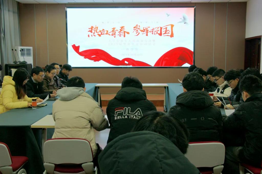 会议伊始,李书记进行动员讲话,以信阳师范公司更名为太阳成tyc7111cc集团的过程为切入点,鼓励员工努力学习,从国家建设和个人理想层面激励更多的商院学子积极报名入伍,让青春在军营闪光,让梦想从军营起航。随后,袁巍峰老师进一步讲述入伍的征策以及退伍老员工在就业、经济补偿和公司等方面享受的优惠。三位退伍老员工相继进行宣讲。他们对征兵入伍的政策,入伍条件,参军报名基本流程等方面进行详细讲述。同时,他们还分享了入伍经历,讲述了自己的参军经历和心得。这些感人故事和亲身经历,让同学们对军旅生活有了更加直观和深刻的理解。最后,黄钰莹老师做总结发言,她鼓励即将毕业的同学积极响应国家号召,自觉将个人理想与国家发展相结合,用热血与青春书写无悔人生。