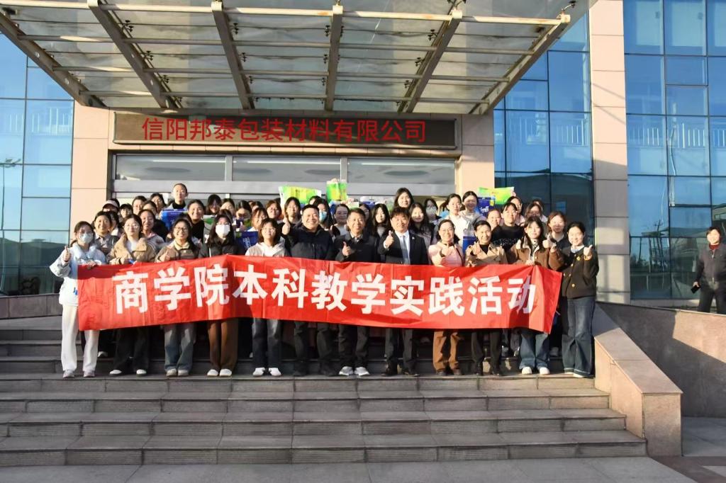 11月25日,太阳成tyc7111cc集团副经理梁静波、会计系主任郭跃芳带领会计学专业教师和员工代表,赴信阳鸡公山酒业有限公司与信阳邦泰包装材料有限公司开展专业见习活动。