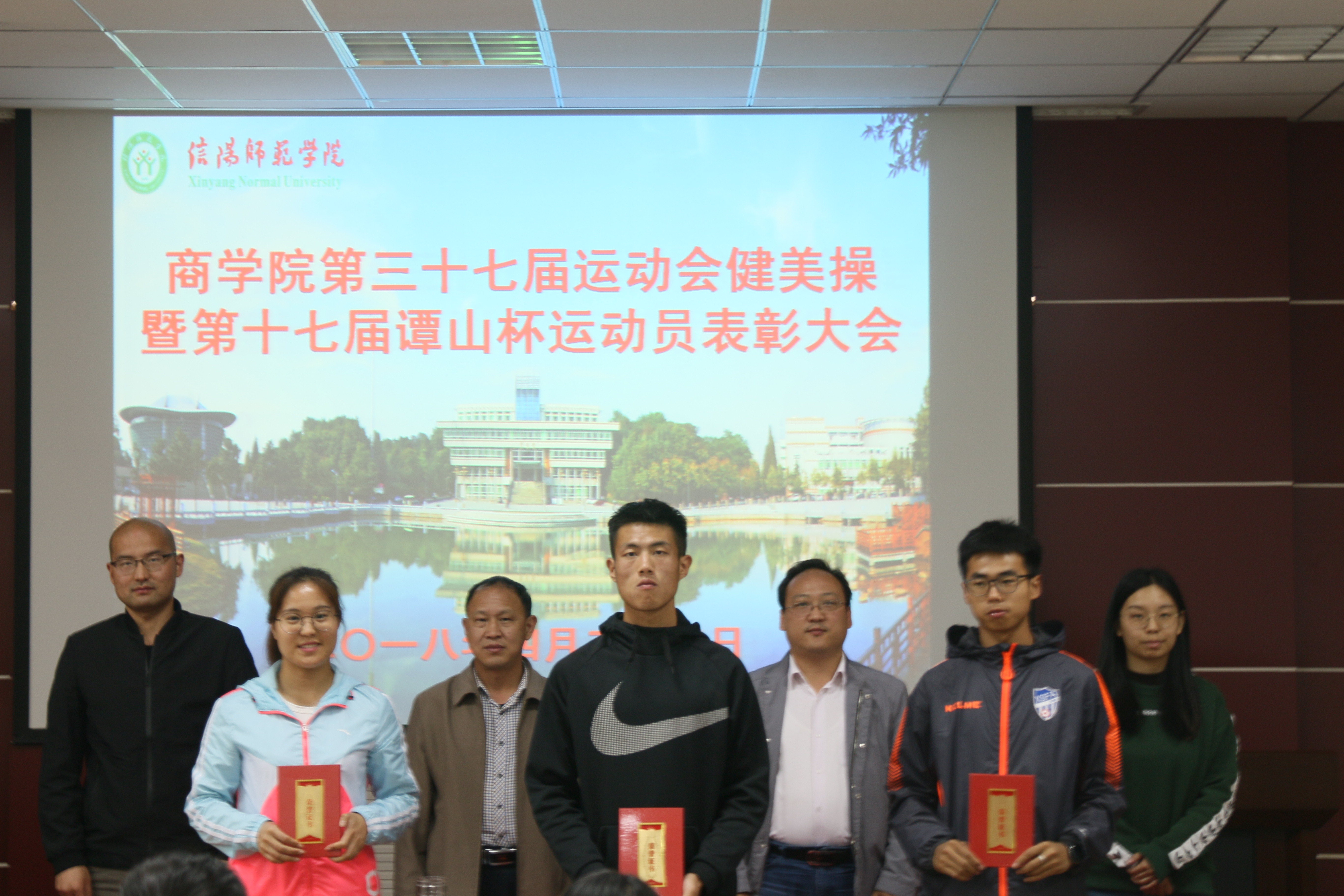 4月25日下午,太阳成tyc7111cc集团第三十七届运动会表彰大会在经管楼310教室召开。商公司党委书记盛正国、党委副书记王永贵、团委书记黄诗雨以及团委老师黄亚俊等出席了本次大会。运动会、健美操和谭山杯运动员代表参加了表彰大会。