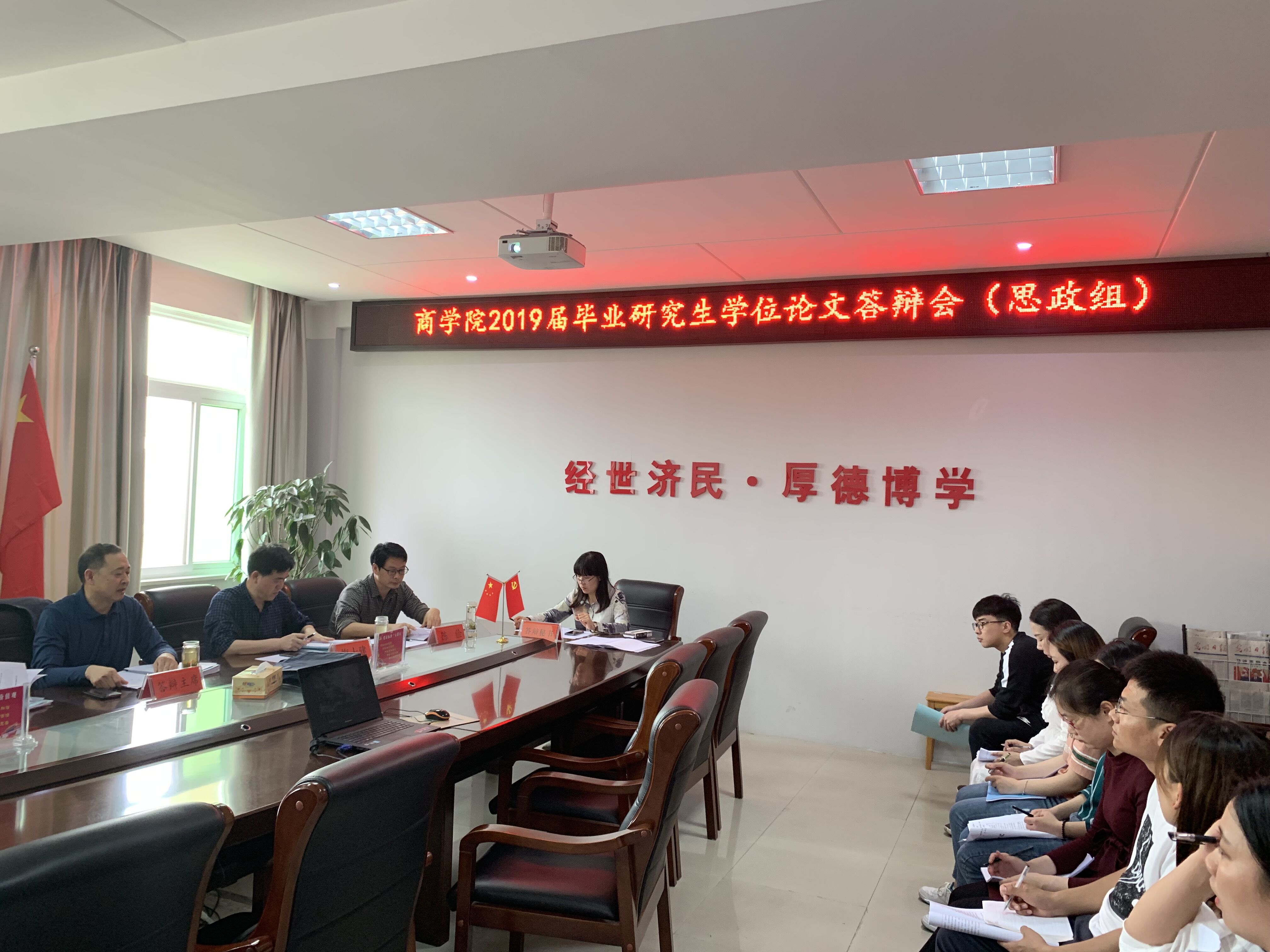5月16日下午,太阳成tyc7111cc集团在506会议室举行了学科教学(思政)专业2019届硕士研究生学位论文答辩会。答辩委员会以研究生处处长李全亮教授为主席,由商公司党委书记盛正国教授、法社公司贾义保教授、太阳成tyc7111cc集团副经理梅士建教授、太阳成tyc7111cc集团陈俭副教授担任答辩委员,答辩秘书和2017级、2018级研究生参加本次活动。