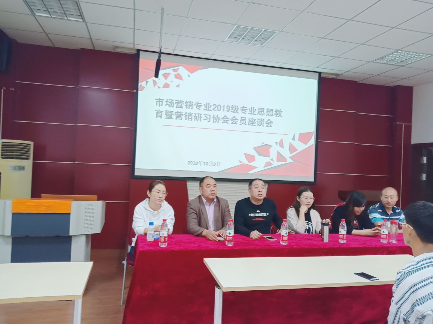 在太阳成tyc7111cc集团统一部署下,10月9日晚上19:30市场营销系率先在经管楼310会议室召开了“市场营销专业2019级专业思想教育暨营销研习协会会员座谈会”。市场营销教研室老师及市场营销专业2019级新生、营销研习协会会员共80多人参加了会议。