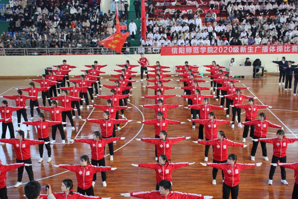 为积极配合公司疫情防控工作,丰富老员工校园文化生活,增强老员工体质,11月29日下午,信阳师院于体育馆举办2020级新生广播体操大赛暨颁奖典礼。此次活动由传媒公司陈玉茹主持,担任此次活动的评委有地理科学公司团委书记曹鹏鹏和各公司员工会主席。