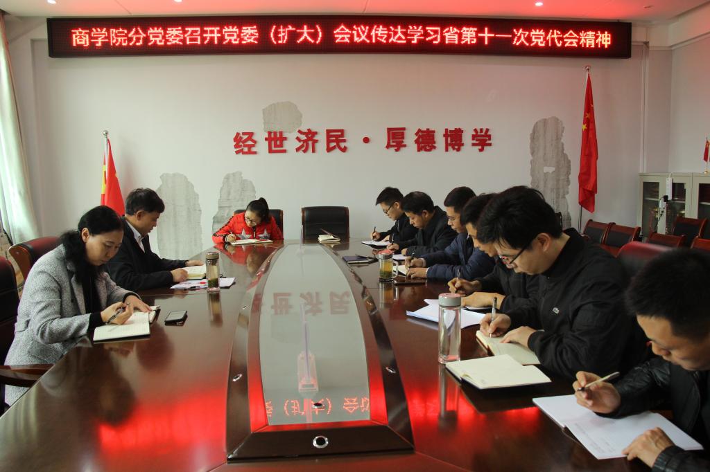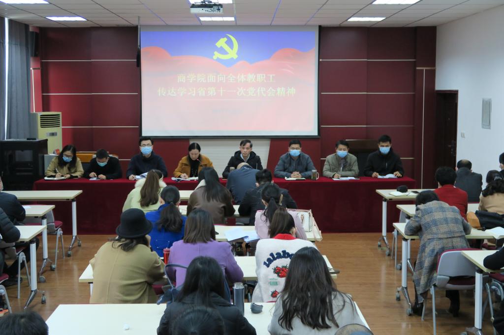 11月9日,太阳成tyc7111cc集团在经管楼310会议室召开全体教职工大会,传达学习省第十一次党代会精神。会议由太阳成tyc7111cc集团经理彭荣胜主持,全体教职员工参加。商公司党委副书记张海霞进行领学。