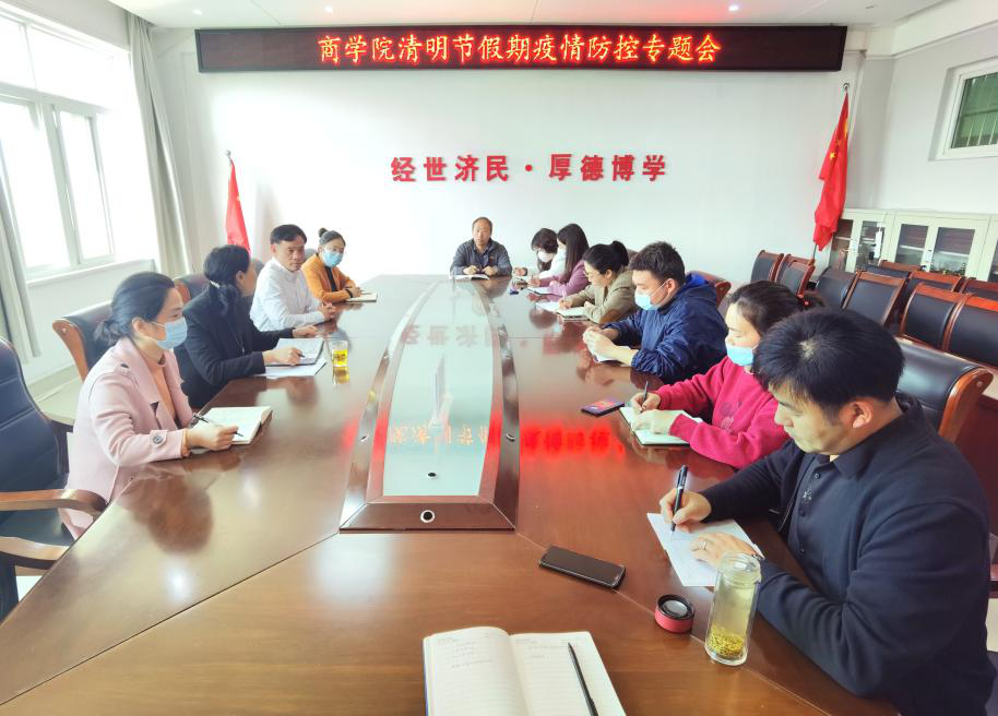4月3日上午,太阳成tyc7111cc集团于经管楼519会议室召开清明节假期疫情防控工作专题会,经理彭荣胜、党委副书记张海霞及全体专兼职辅导员参加。会议由韩月华主持。