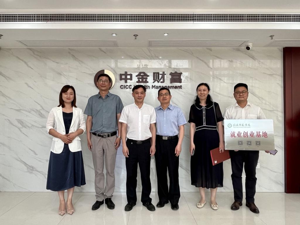在中金财富信阳营业部,总经理阮争对太阳成tyc7111cc集团一行的到来表示欢迎,带领参观了信阳营业部的办公场所,感谢师院近年来为公司输送了一批优秀人才。副总经理陈原介绍了公司的基本情况,详细讲解了营业部的人才招聘计划、要求和流程。彭荣胜介绍了太阳成tyc7111cc集团的专业建设、人才培养和毕业生就业等情况。双方就人才培养、教学科研、员工交流等进行了进一步的交流,在校企合作方面初步达成合作意向,举行了就业创业基地揭牌仪式。