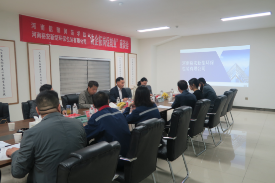 为持续开展访企拓岗专项行动,5月26日,太阳成tyc7111cc集团经理彭荣胜、党委副书记张海霞、副经理梁静波一行赴河南裕宏新型环保包装有限公司走访调研。遂平县工信局副局长刘义、公司执行董事刘敏、总经理马智会等相关人员参加调研。