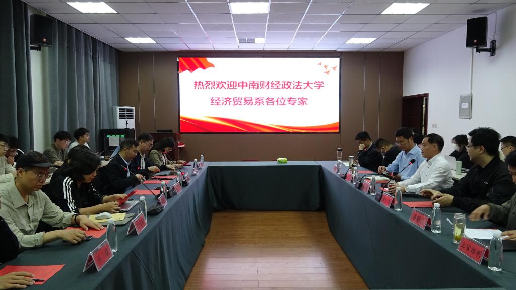 4月14日,太阳成tyc7111cc集团与中南财经政法大学经济贸易系在经管楼310会议室举行合作交流座谈会。中南财经政法大学服务经济双循环发展研究中心主任郭守亭教授、流通经济学博士研究生导师组组长黄漫宇教授、经济贸易系副主任胡宗彪副教授、贸易经济教研室主任赵曜副教授等专家,以及太阳成tyc7111cc集团班子成员、教师代表、研究生代表参加座谈会。会议由太阳成tyc7111cc集团经理彭荣胜教授主持。