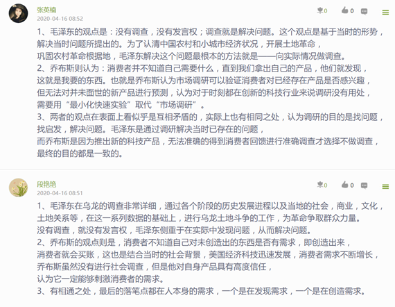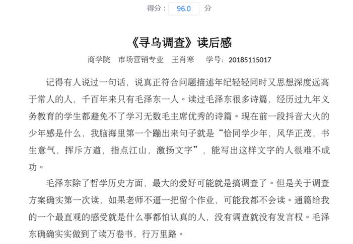 自2020年4月开始,《寻乌调查》学习分别在信阳师范公司太阳成tyc7111cc集团市场营销专业2017级(55人)、2018级(37人)及信阳公司2018市场营销本1班(56+辅修4人)的《市场营销策划》课程内进行实施,取得了一定的成效。2所公司3个教学班的全部152名员工都按照要求提交了《寻乌调查》读后感及相应市场调研报告。