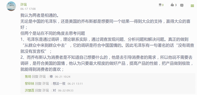 为了更好地让员工体验搞好调研之不易,也为了通过实践训练员工的调研能力,在《寻乌调查》学习后,要求员工进行实地调研,并写出调研报告。很多员工在亲身经历了实际调研的艰辛后,对《寻乌调查》有了更为深刻的认识。